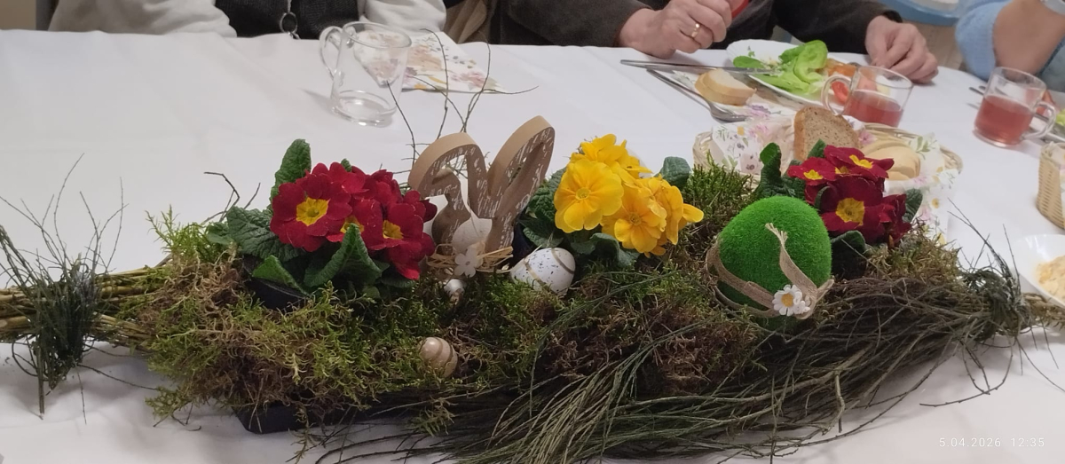 W Wielkanoc zasiedliśmy razem do świątecznego śniadania, dzieląc się radością, życzeniami i tradycyjnymi potrawami. Był to czas rozmów, uśmiechu i bycia razem.